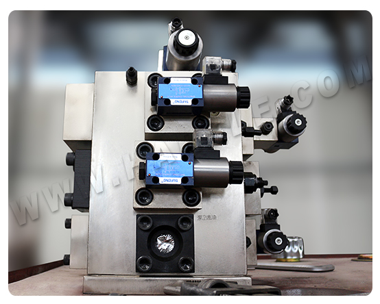 2. Hydraulic System: The hydraulic system device is arranged on the right side of the press, with cartridge integrated system, flexible action, reliable work, good sealing performance. The hydraulic pump comprises an oil tank, a high-pressure pump, motor, cartridge valves and other components.