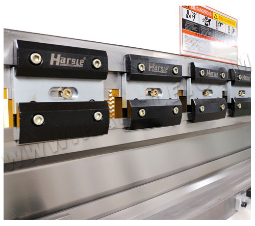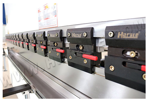 | ● Protective guards on each side can protect the user during operation. | ● Press Brake toolings are made from 42 CrMo materials with hardness up to 42 degrees to ensuring die service life. |